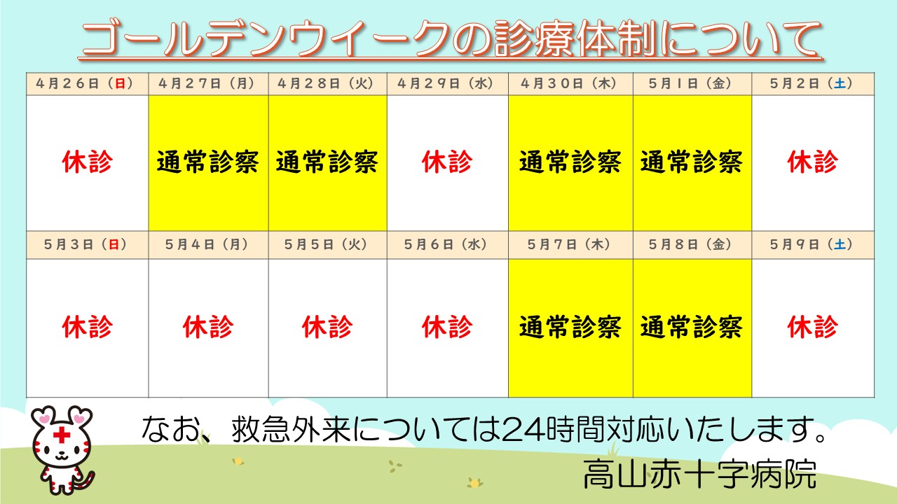 > 令和8年度ゴールデンウイークのお知らせ(休診日のご案内)